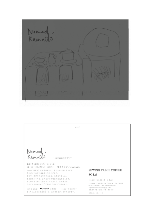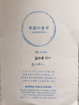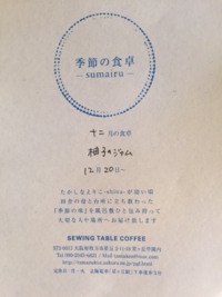 場所:SEWING TABLE COFFEE SO Lei (納屋は底冷えします。あたたかな装いでお越し下さい)