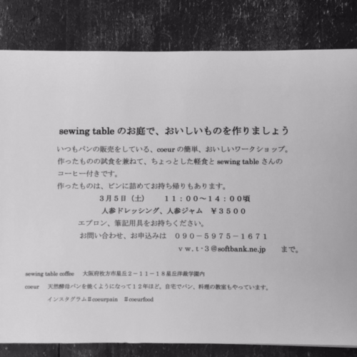 SEWING TABLE COFFEE の季節の中で、いっしょに手を動かし過ごしましょう