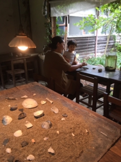 土で、貝殻のカケラを一緒に作り楽しみましょう。